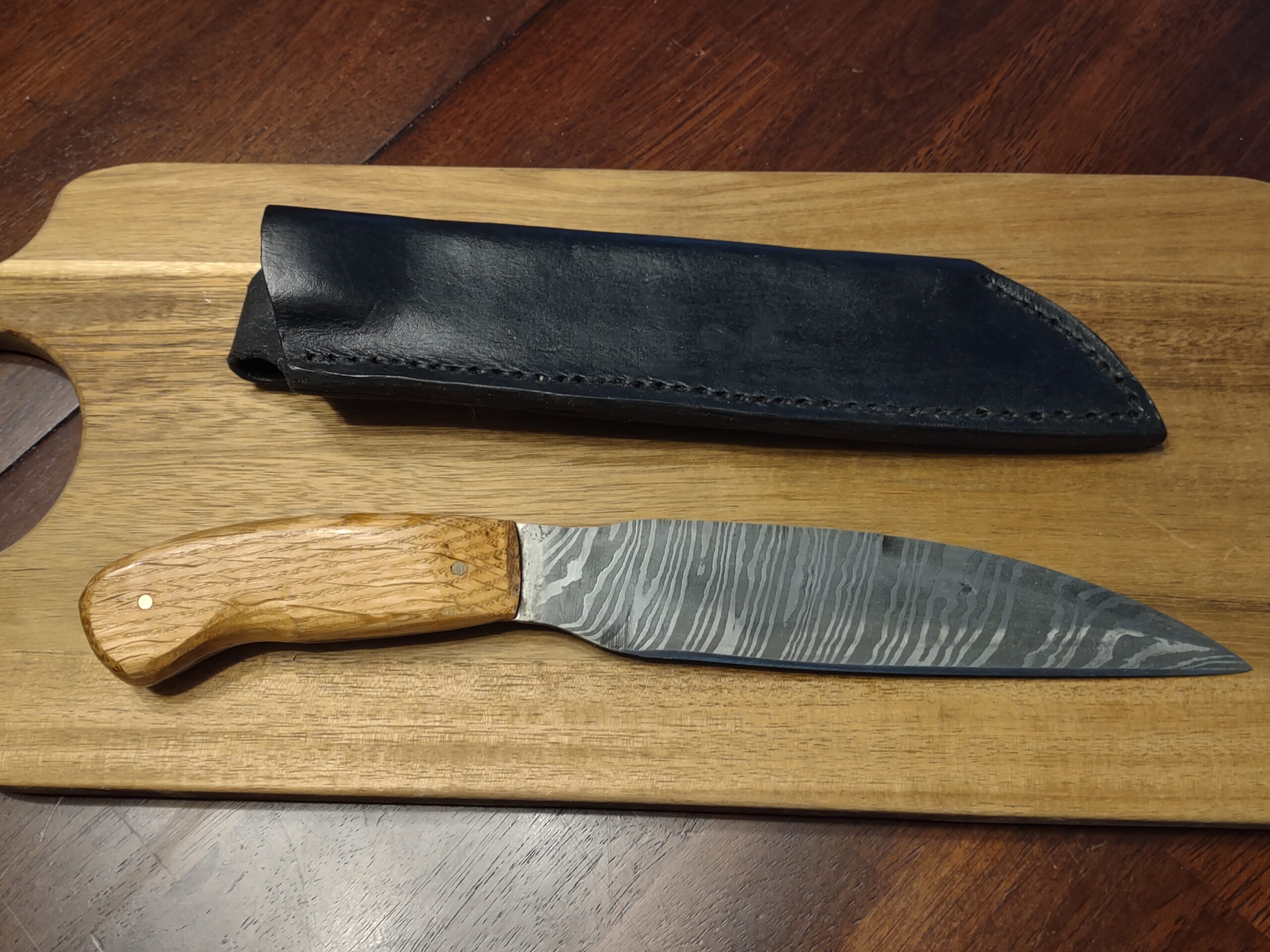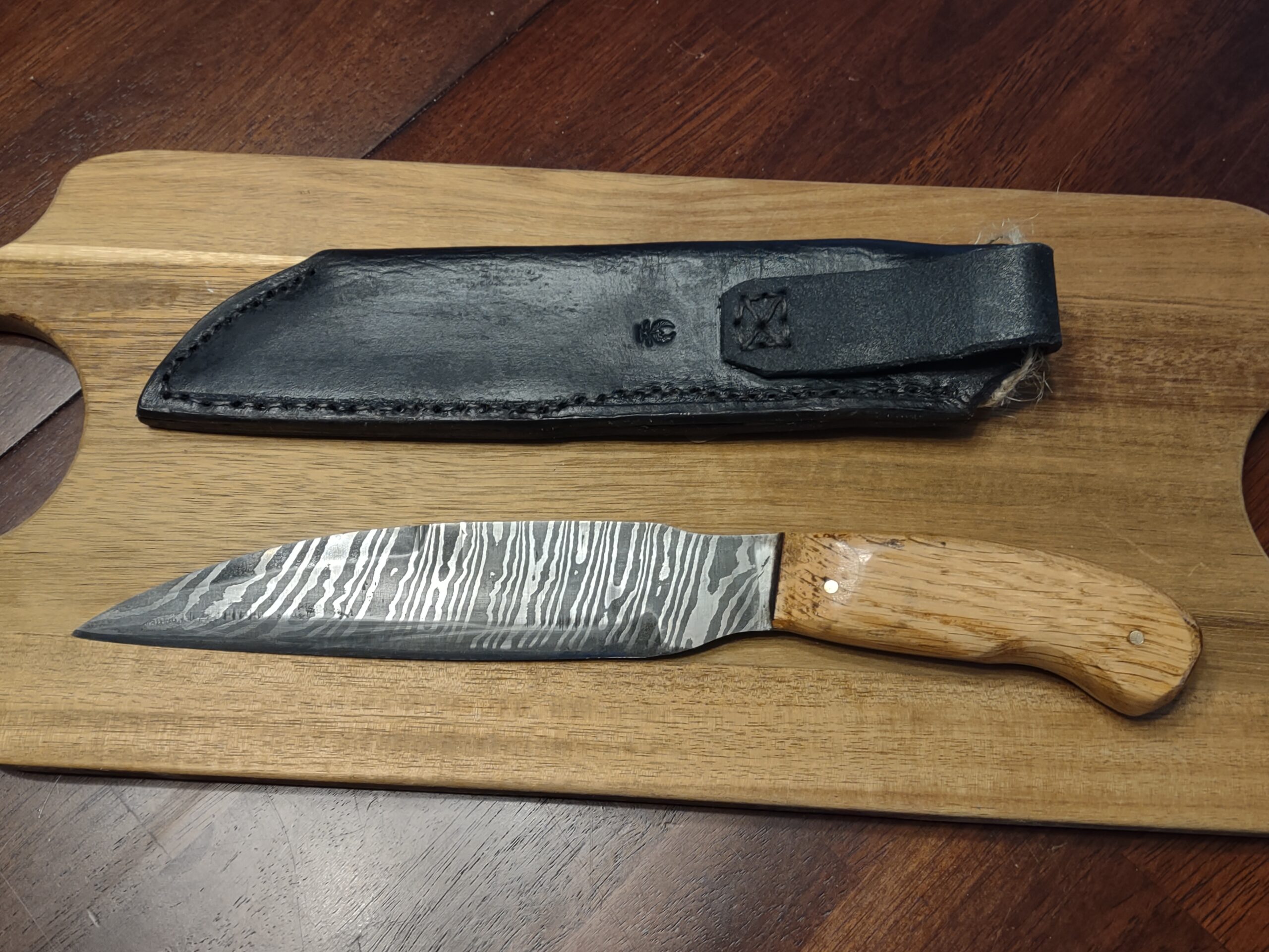 Each knife comes with a custom-made leather sheath, hand-stitched and fitted for secure carry and protection.